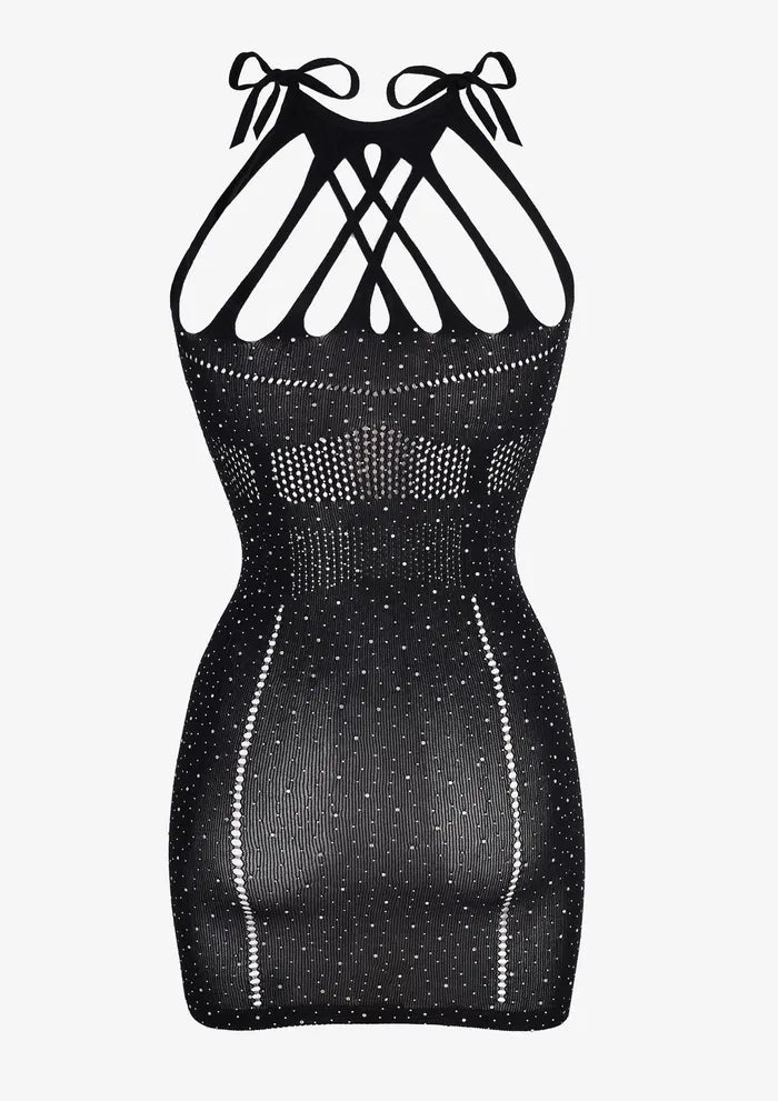 Make an unforgettable impression with this absolutely stunning mesh dress. Crafted from premium stretch mesh and adorned with sparkling diamante accents throughout, this exquisite piece is designed for the confident woman who loves to shine. The sophisticated openwork construction creates an intriguing interplay of coverage and allure, whilst the adjustable tie straps ensure a perfect, personalised fit every time.