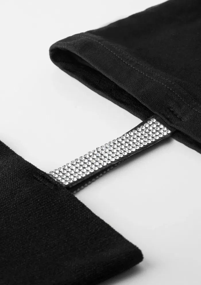 Experience the brilliance of innovative design with this stunning skirt and stockings combination. This exquisitely crafted two-piece set represents the perfect fusion of functionality and sophisticated allure. The cleverly designed high-waisted mini skirt pairs seamlessly with integrated stockings, creating a flawless silhouette that's both practical and absolutely gorgeous. Featuring sparkling crystal shoulder straps and luxurious 100 denier microfibre construction, this set transforms any occasion into something extraordinary.